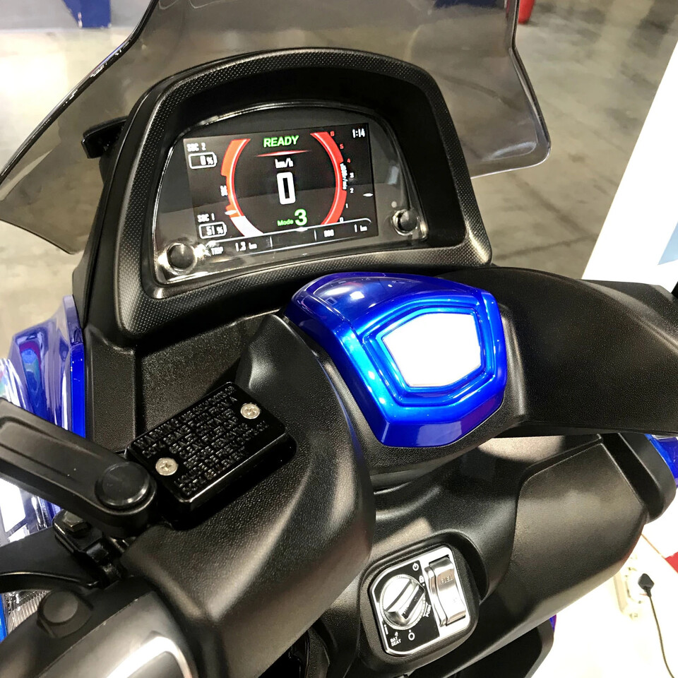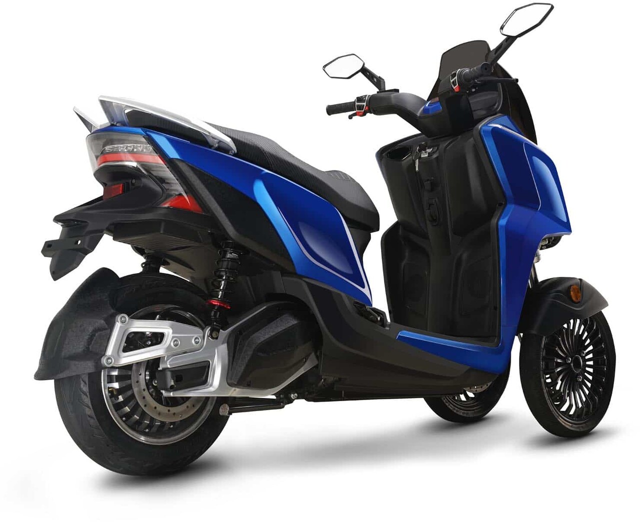 The scooter has a powerful 5,000 watt electric motor for a top speed of 100 km/h.