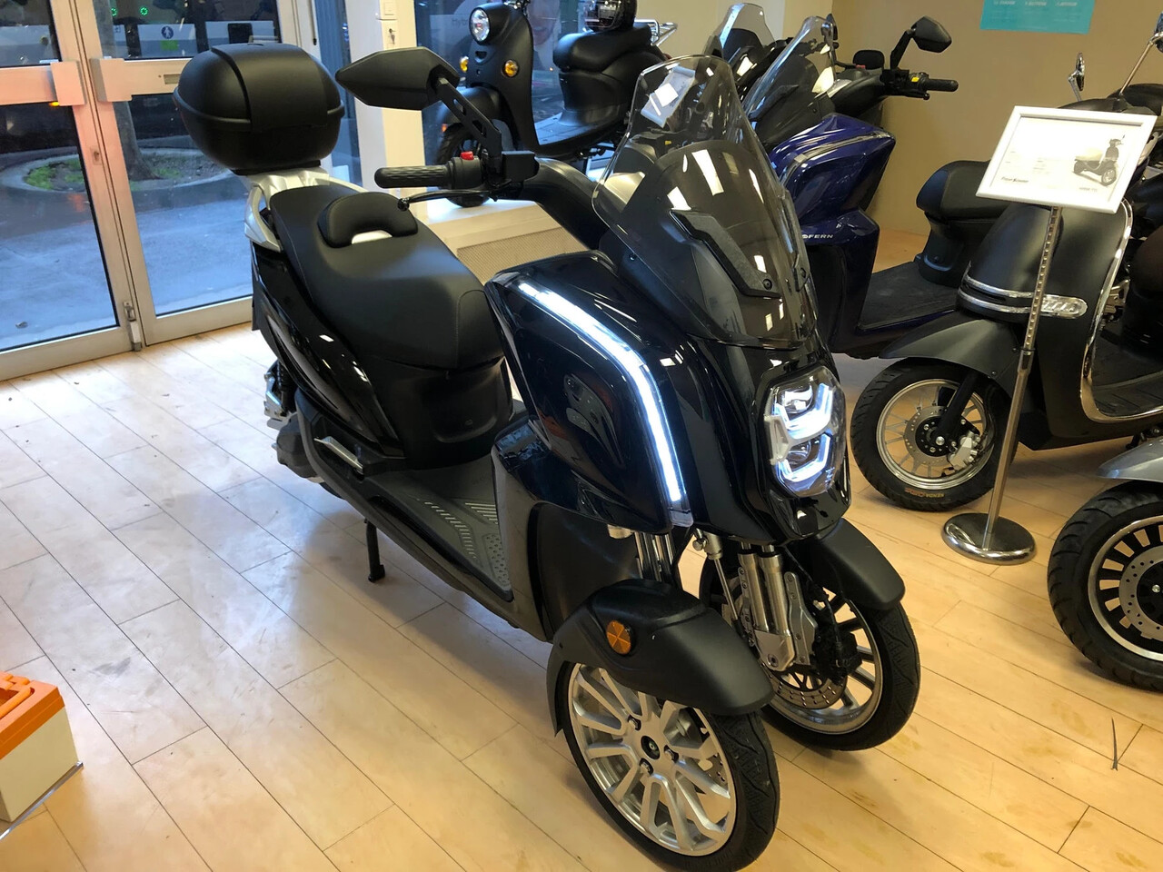 The 3 RS+ is an innovative three wheeled electric scooter with gyroscopic technology and an electric management system of the front wheels that provides improved handling and safety for less experienced drivers.