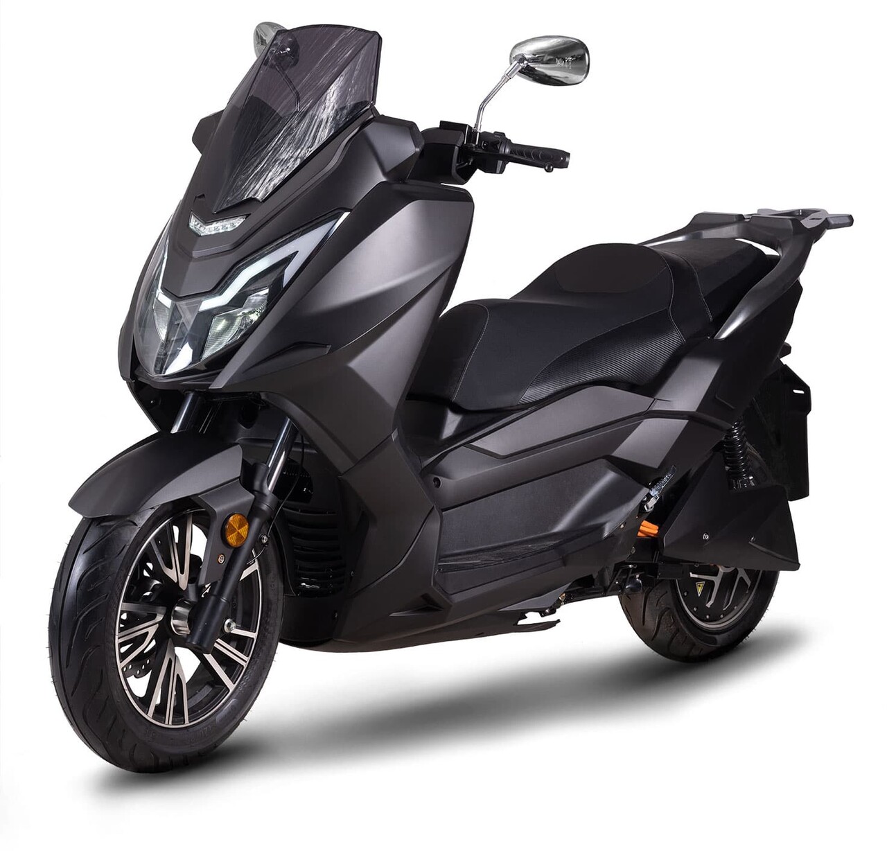 The scooter has a powerful 8,000 watt electric motor for a top speed of 120 km/h.