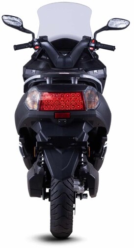 The scooter has a powerful 9,900 watt (17,000 watt peak power) electric motor for a top speed of 120 km/h.