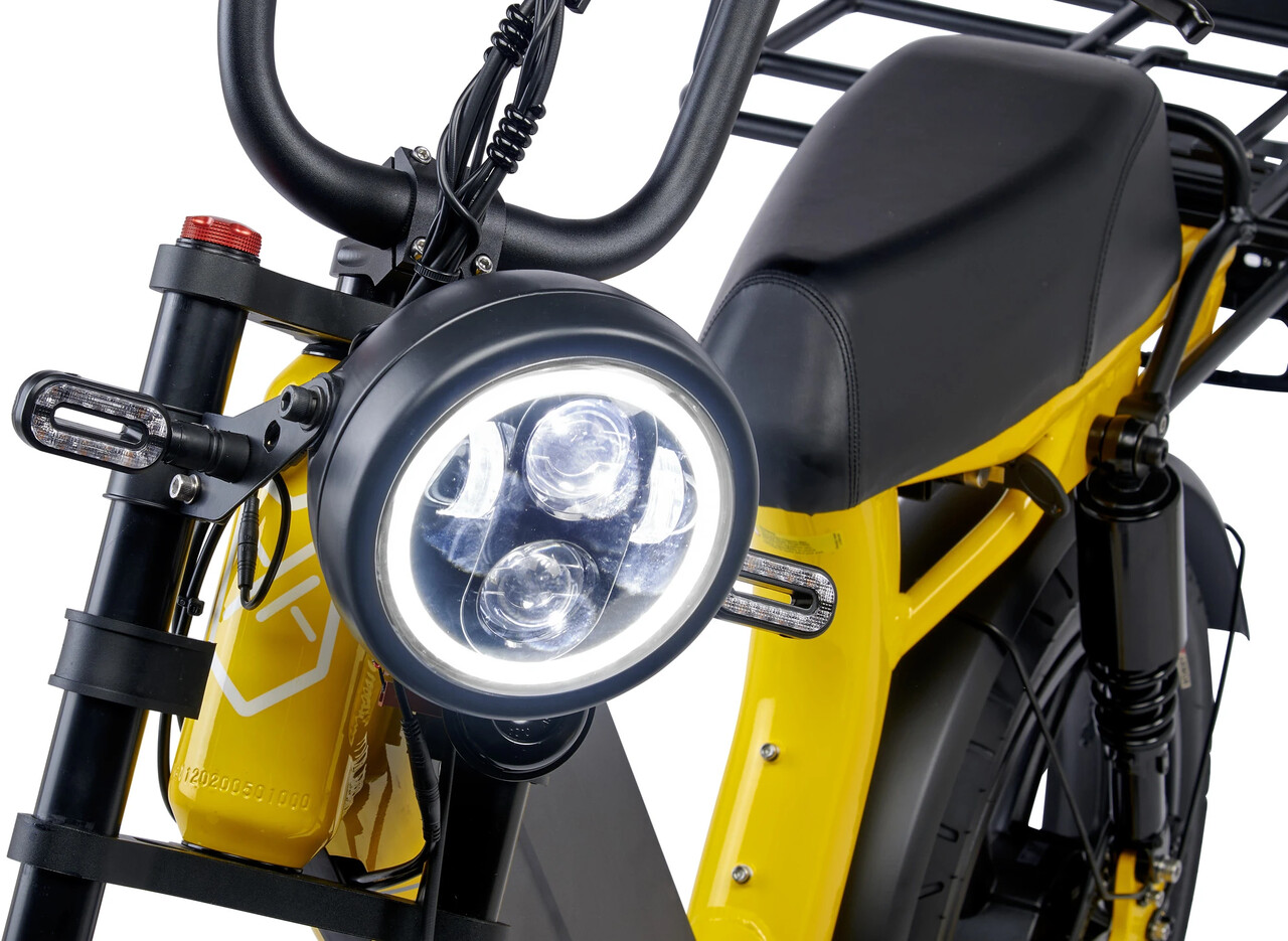 The moped has a powerful 1,000 watt Bafang electric motor for a top speed of 48 km/h.