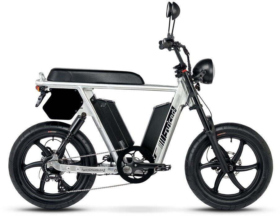 The Juiced Bikes HyperScrambler 2 is a high quality Electric Moped by electric bike manufacturer Juiced Bikes from California, USA. The company was founded in 2009 by five-time American Champion and 2004 Olympian high jumper Tora Harris who graduated from Princeton University with a degree in Mechanical and Aerospace Engineering.