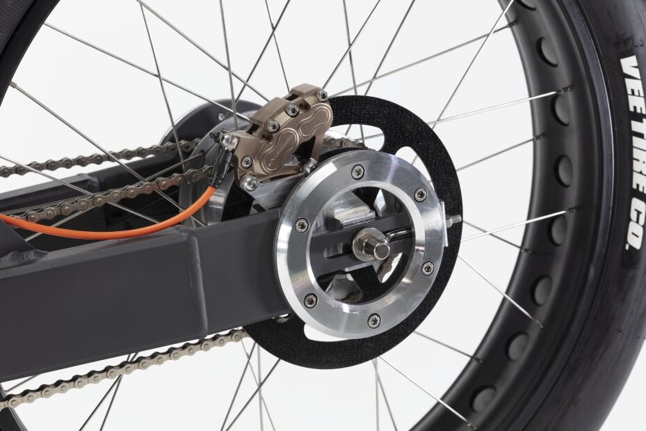 The moped has two Alligator 380 mm front disc brakes with 8 calipers.