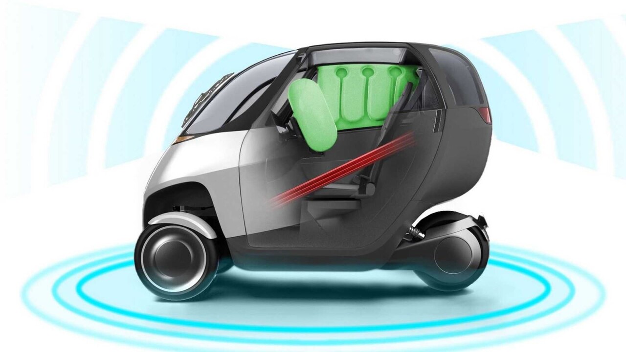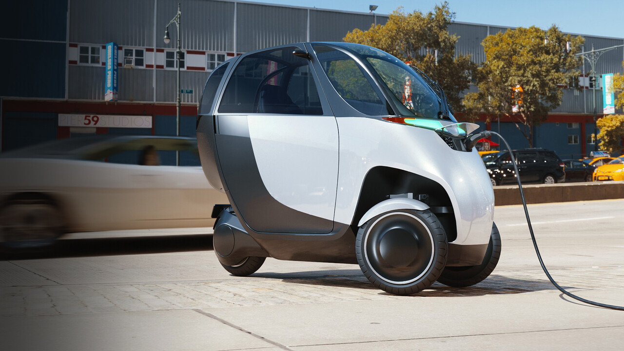 The scooter-car has a powerful electric motor for a top speed of 145 km/h. The vehicle accelerates from 0 to 97 km/h in 3.7 seconds.
