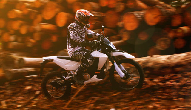 The moped has two swap-able lithium batteries for a driving range of 100 km.