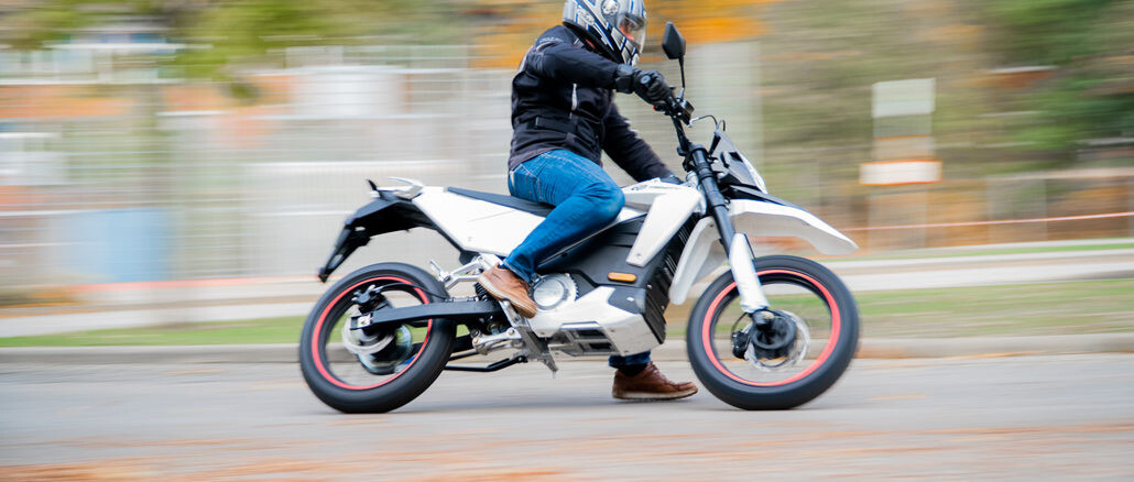 The moped has a powerful 6,000 watt electric motor for a top speed of 120 km/h. The speed of the moped can be restricted to 45 km/h.