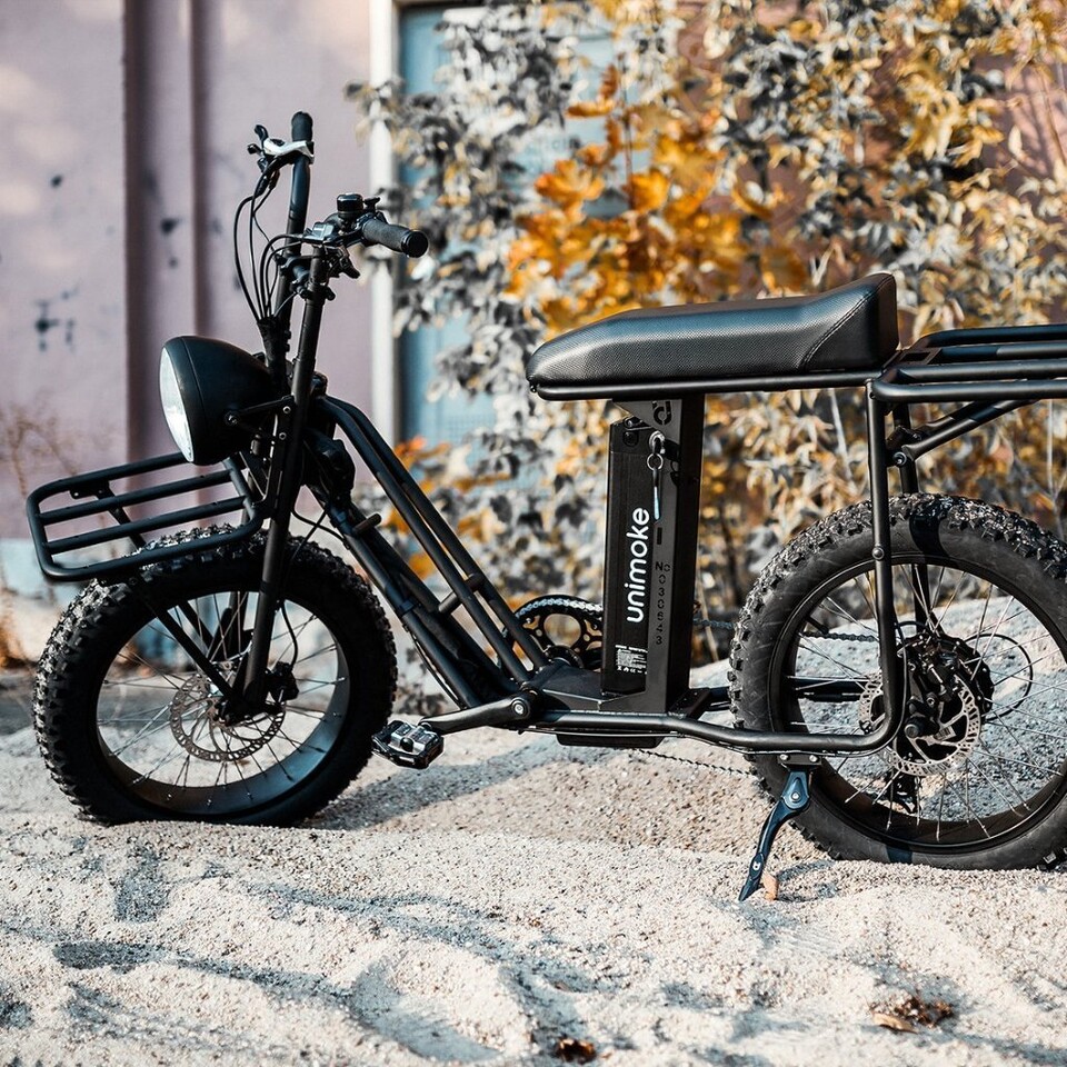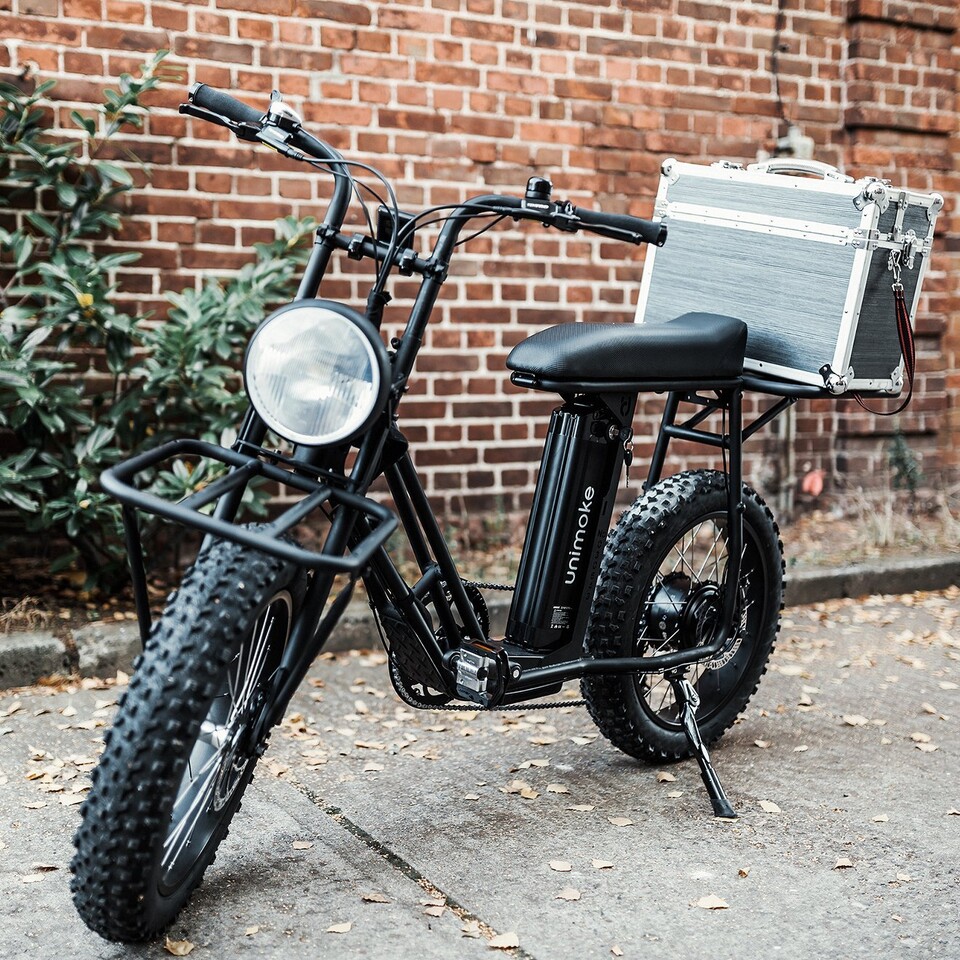 The UNI Swing is designed as a sport utility moped for courier, rental and delivery operations and features a step-through frame that allows for bulky rear rack loads or child seats.